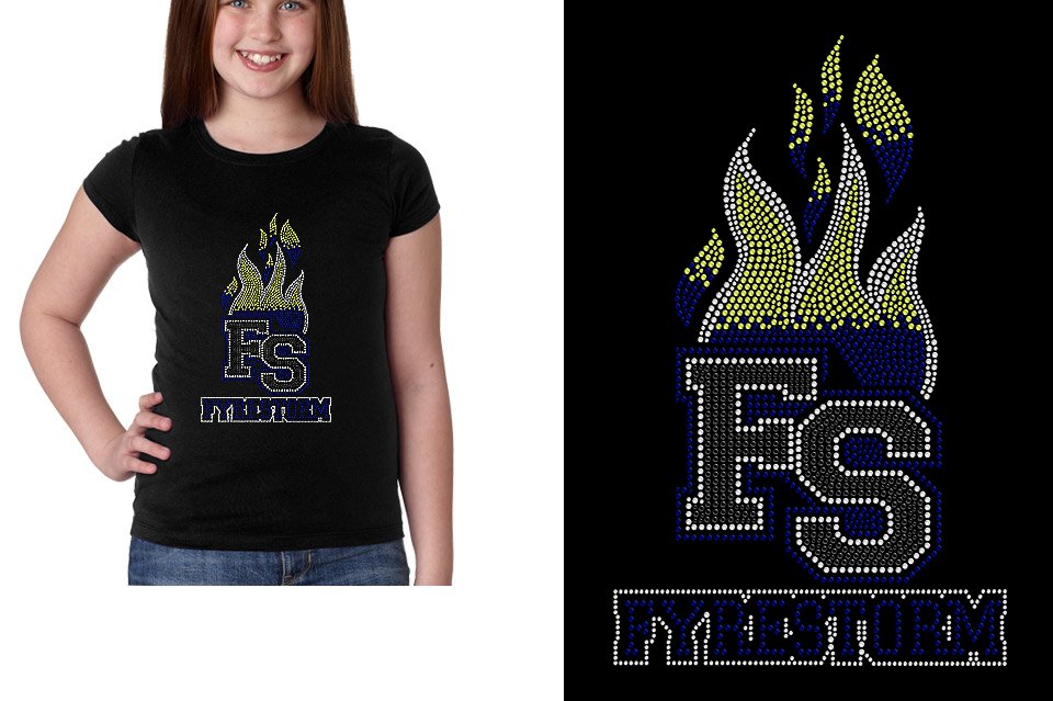 Rhinestones FYRESTORM FS full logo stones Youth Girls' Princess T-Shirt